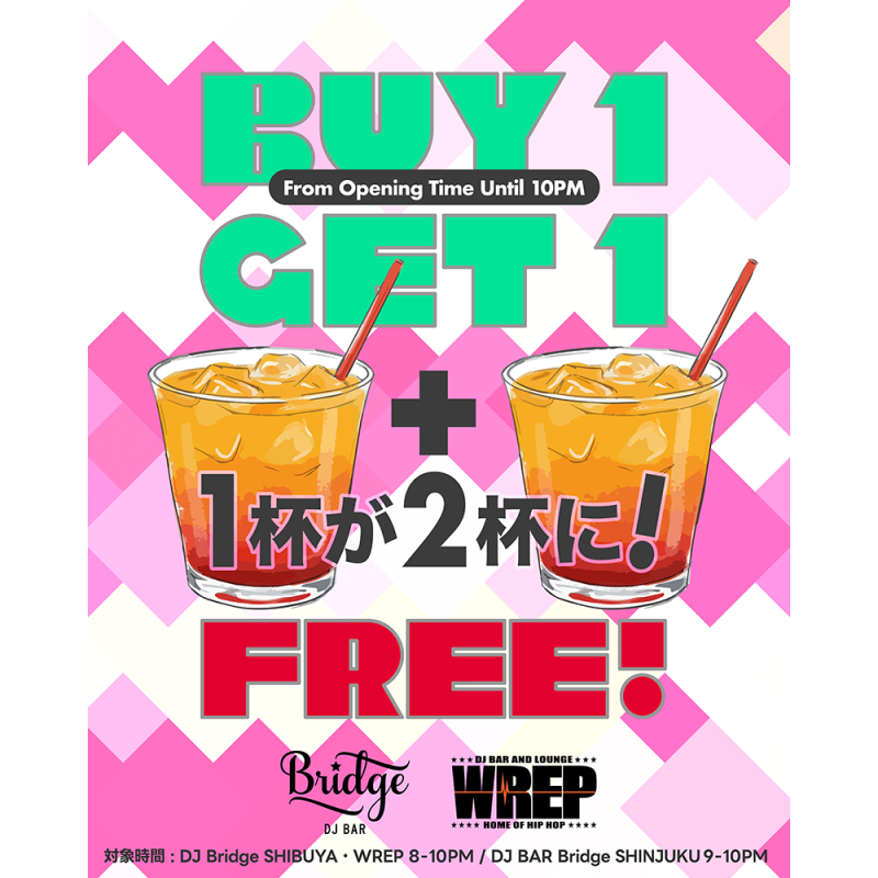 We’re starting a “Buy 1 Get 1 FREE” at DJ BAR Bridge and DJ BAR & LOUNGE WREP.